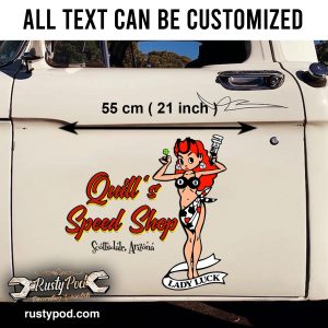 personalized lady luck hot rod lettering vinyl sticker 10721