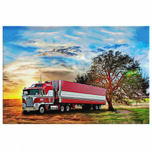 Trucking canvas is a type of decorative canvas that features a trucking theme or design. This may include images of trucks or landmarks commonly seen on long-haul routes, or more abstract designs inspired by the trucking industry. Canvas is a durable material that is resistant to wrinkling and easy to care for, making it a practical choice for decorative items. The Trucking canvas can be hung in the office, living room, or even in the bedroom, it can act as a decorative object, making your room or office colorful. These products are popular among truck drivers and other individuals interested in the trucking industry as a way to show their love for the industry and add a personal touch to their home or office decor. Trucking-themed canvas products also make for thoughtful gifts for friends and family members who work in the trucking industry.
