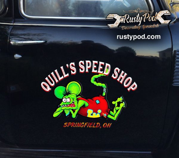 2 pcs personalized hot rod garage | rat rod | kustom kulture set 02 vinyl stickers 09775