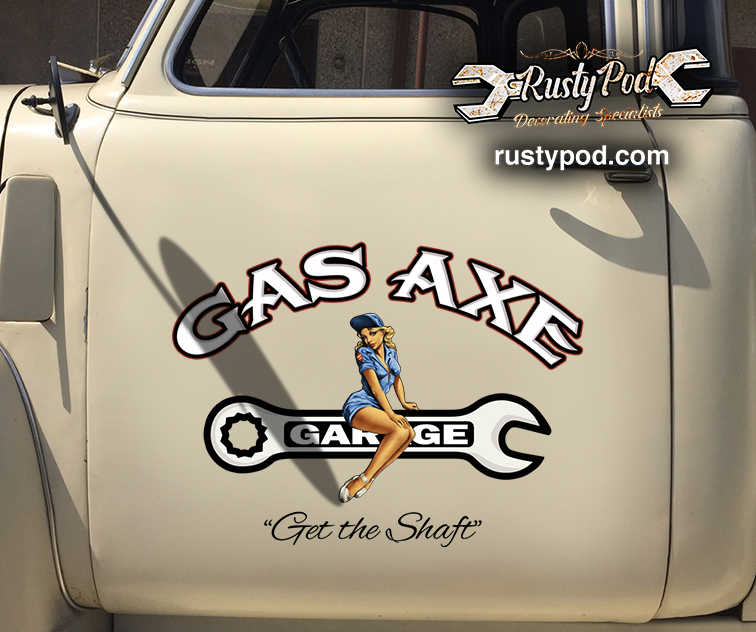 2 pcs personalized hot rod | pin up garage | get the shaft set 02 vinyl stickers 09764
