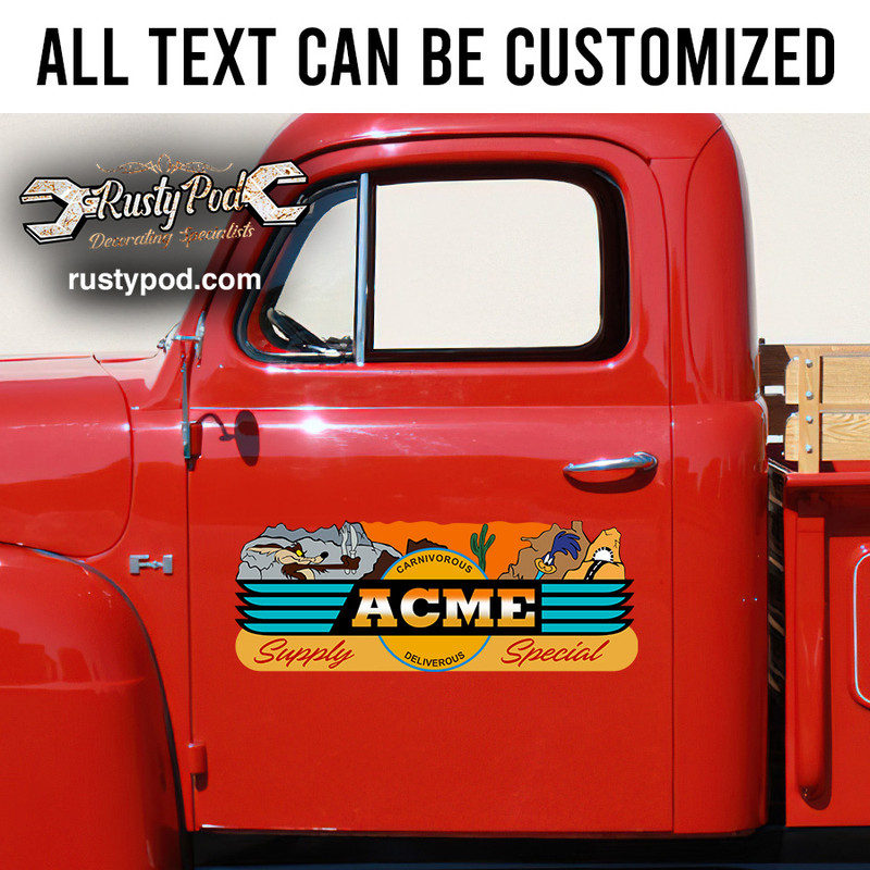 acme supply hot rod door art kustom kulture rat rod decal old school truck lettering sticker 12333