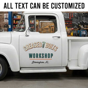 Custom Retro Workshop Name Lettering Decal with Bolt Graphic for Shop Trucks sticker 14229 is highly recommended for everyone seeking an authentic workshop experience. Crafted with premium materials, this product ensures top-notch quality and exceptional durability. It represents peak resilience, being engineered to resist water, intense sunlight, and demanding environmental conditions without losing its charm.