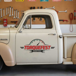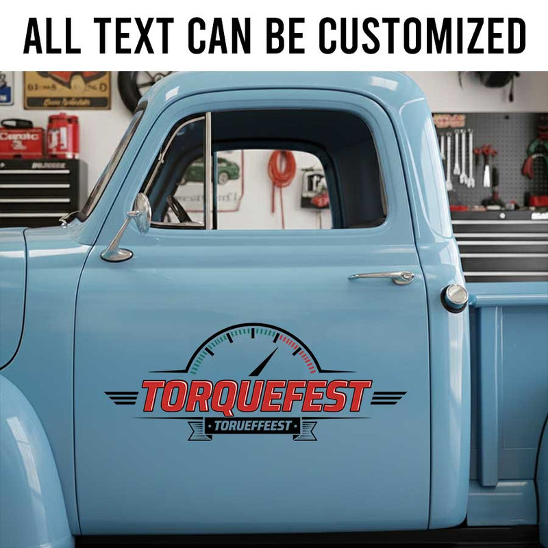 Custom Speed Shop Vehicle Decal – Modern Torque Meter Design with Bold Racing Style Lettering sticker is produced using advanced UV printing technology on high-quality vinyl panels, ensuring sharp, vibrant visuals and exceptional durability over time.