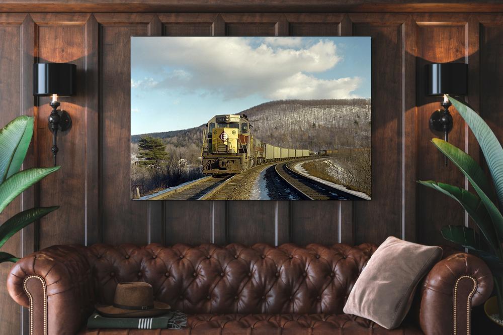 The Elackawanna Single canvas rectangle Erie Lackawanna, is the perfect addition to any railway enthusiast’s living room, dining room, bedroom, or other living spaces. The design features a three-dimensional printed pattern that looks natural and will have people talking about you in no time. The Elackawanna Single canvas rectangle Erie Lackawanna is made of the highest quality materials. The 3 cm thick wood canvas is stretched over finger-jointed, kiln-dried stretcher bars that are 1.25″ in depth. These stretcher bars are FSC certified, meaning they are sourced from sustainable forests and are free of knots, sap, and warping. The vivid canvas artworks are by local design house Rustypod, and its colors will enhance your space.