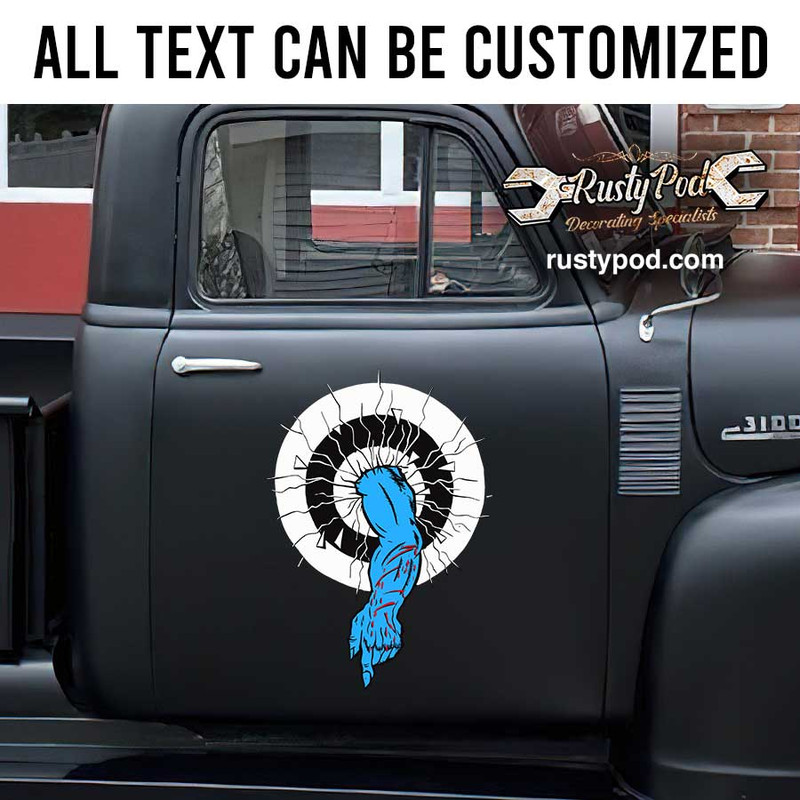 of a contour cut to eliminate excess decal, making the sticker look painted on. funny weirdos muscle arm on door sticker is suitable for use on cars, motorbikes,