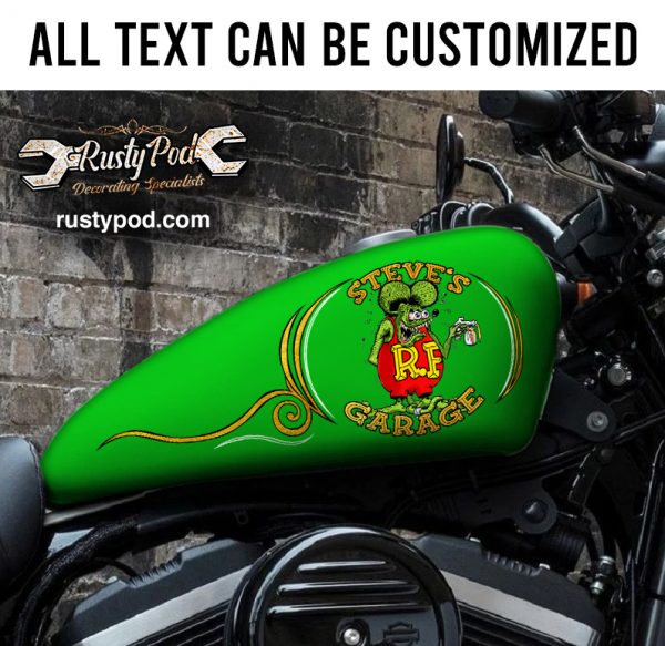 personalized motorcycle garage | biker | rat fink motorcycle fuel tank decal 10206