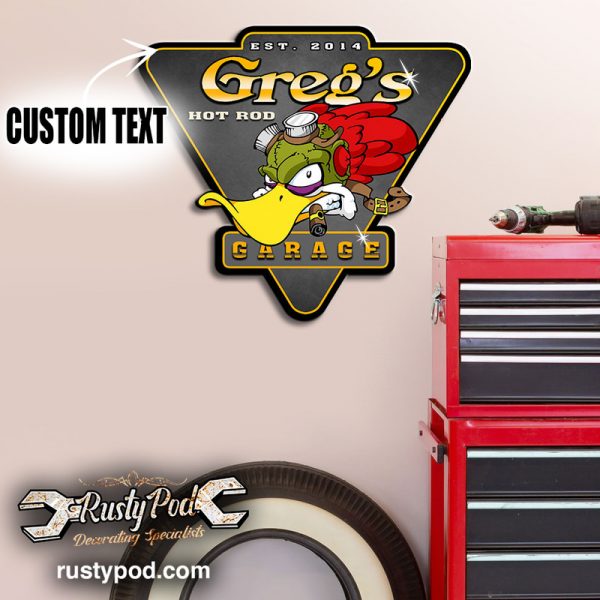 personalized hot rod garage | kustom kulture | rat rod | mechanic | hot rod duck metal sign 10180