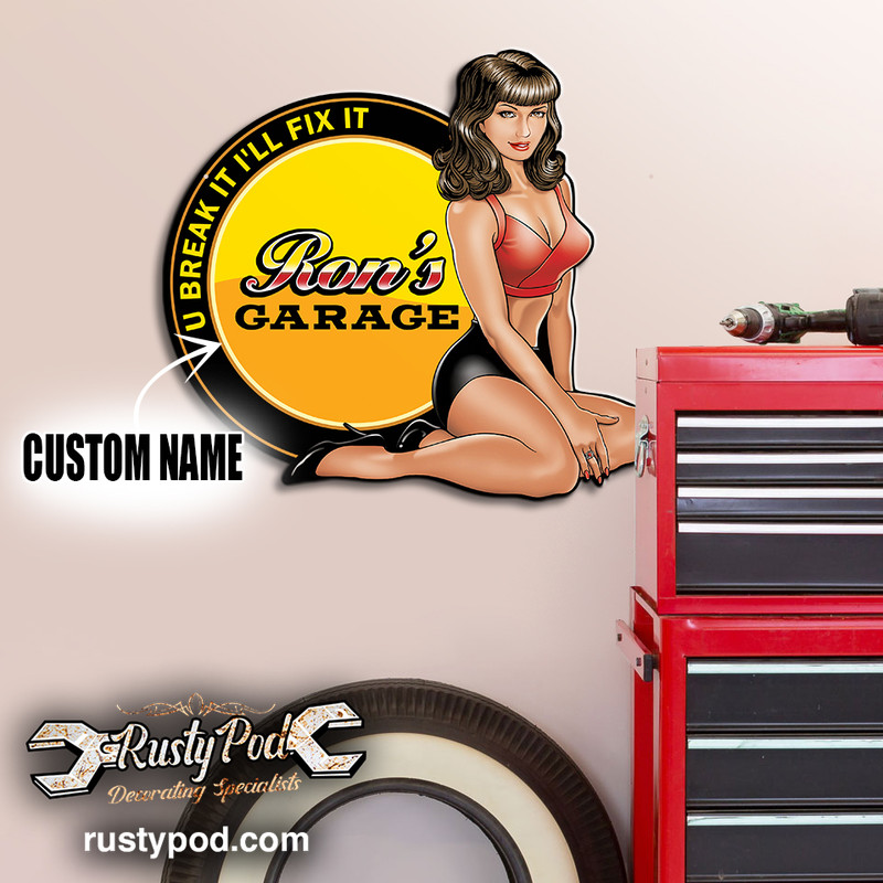 personalized hot rod garage | pin up garage | kustom kulture | old school garage metal sign 10189