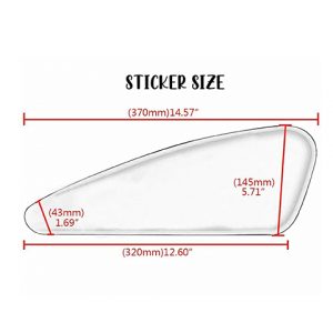 Our motorcycle fuel tank stickers are sold in pairs, including one left-side decal and one right-side decal. The design is printed on a vinyl sheet measuring 15 inches wide by 6 inches tall. This size perfectly fits the fuel tank of Harley Davidson Sportster motorcycles, but it can also be used for other bikes.