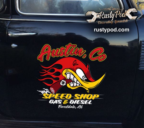 Order 2 pcs personalized speed shop | gas and diesel | garage | hot rod set 02 vinyl stickers now!