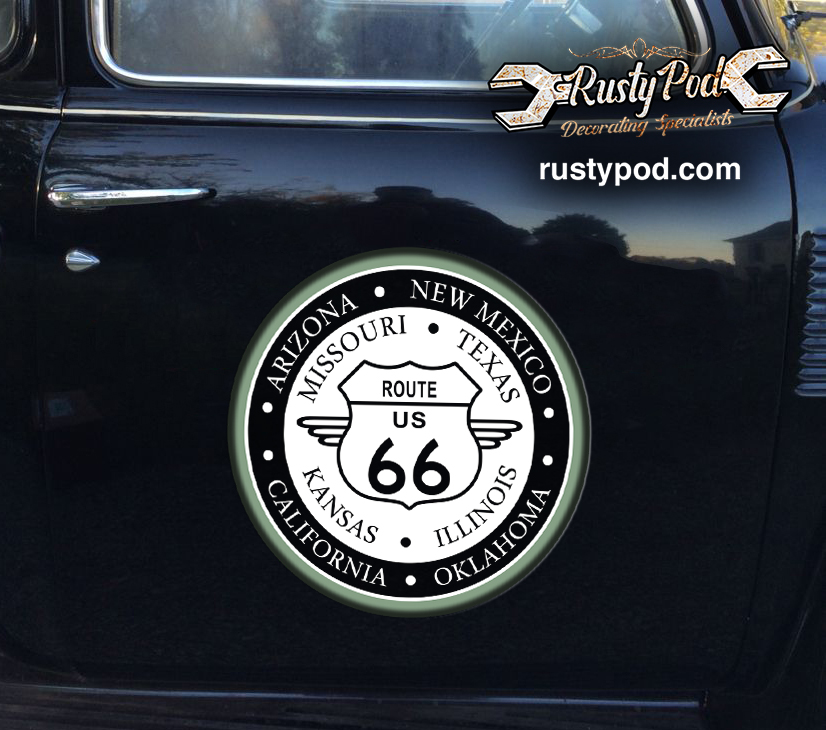 2 pcs ROUTE 66 & States Retro Car Hot Rod Motorhome | hot rod garage vinyl sticker 09911