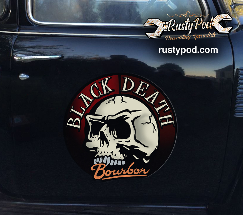 Be the first to review “2 pcs black death bourbon | hot rod garage | skull vinyl sticker 09997”