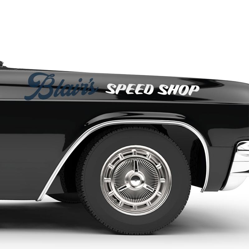 2 pcs personalized hot rod garage | speed shop | hood vinyl sticker 10033