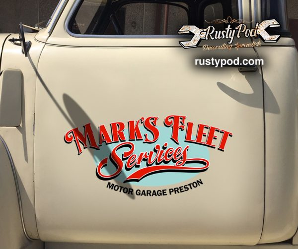 Order 2 pcs personalized hot rod garage | vintage lettering vinyl sticker now!