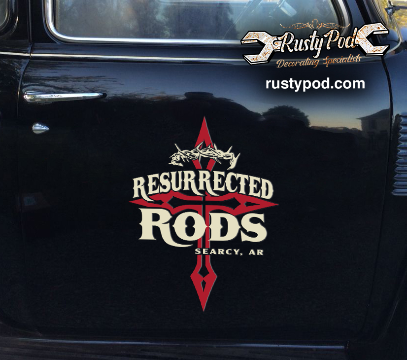 Order 2 pcs personalized resurrected rod | hot rod garage | truck lettering vinyl sticker now!