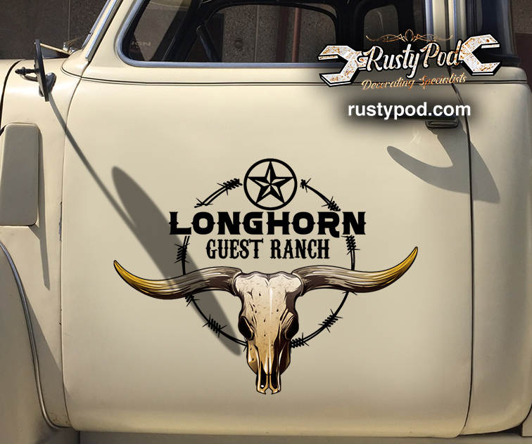 2 pcs personalized longhorn ranch | pinstriping | farm truck | hot rod vinyl sticker 10086