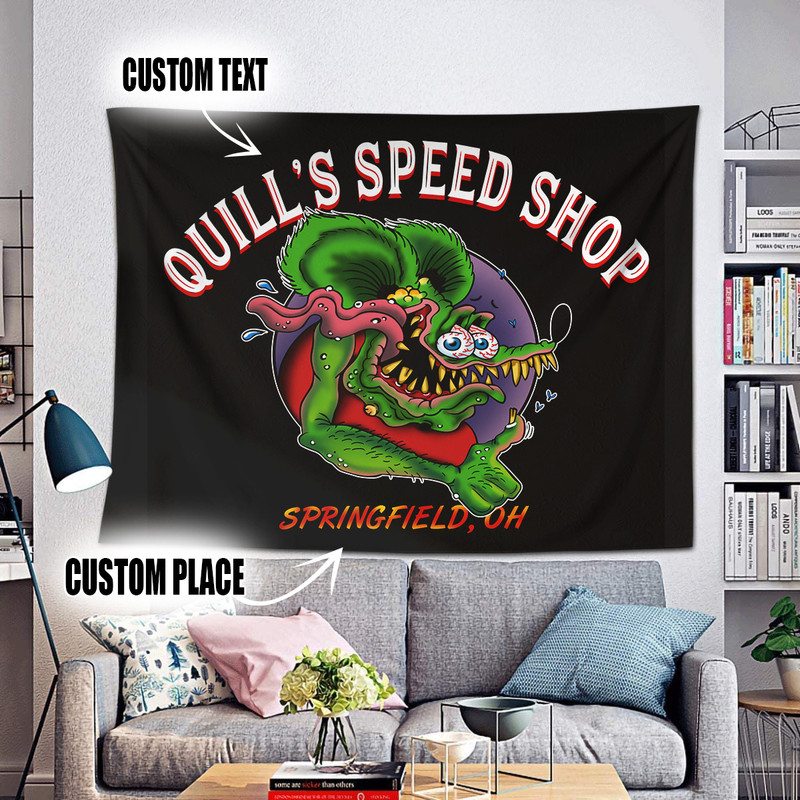 The vibrant colors and intricate details of the Hot rod design are digitally printed onto the fabric, ensuring a long-lasting, fade-resistant finish. The personalized eye ball | hot rod | kustom garage | low brow art tapestry is also machine washable for easy care and maintenance. Hang it in your bedroom, living room, or any other space to add a touch of vintage hot rod style.