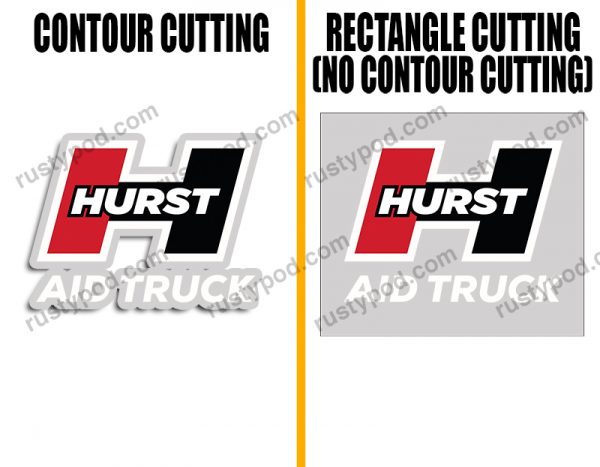 - Contour Cutting/Trim means that the decals are printed with an outline hugging the design. Meanwhile, with no contour cut, the outline will be a rectangle instead.