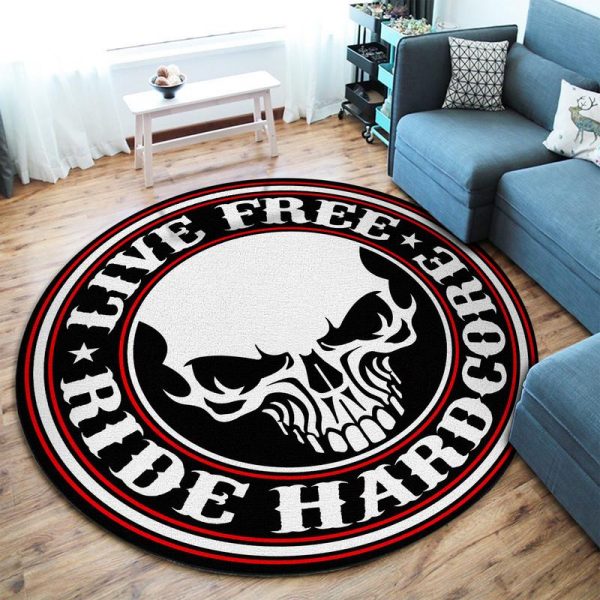 LIVE FREE RIDE HARDCORE Biker Rider Chopper round mat 08591