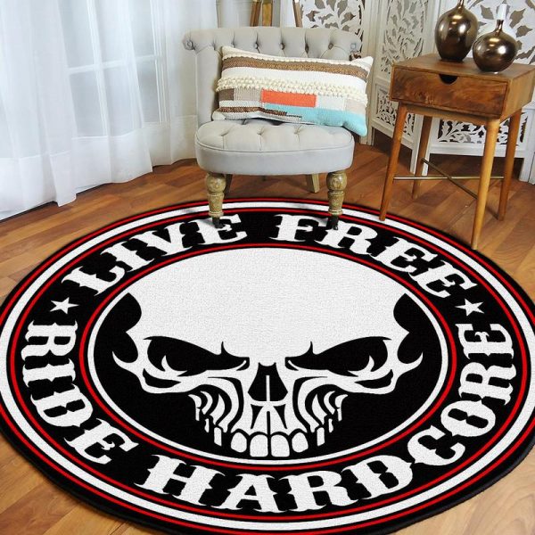 Be the first to review “LIVE FREE RIDE HARDCORE Biker Rider Chopper round mat 08591”