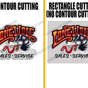 • Contour Cutting/Trim means that the decals are printed with an outline hugging the design. Meanwhile, with no contour cut, the outline will be a rectangle instead.