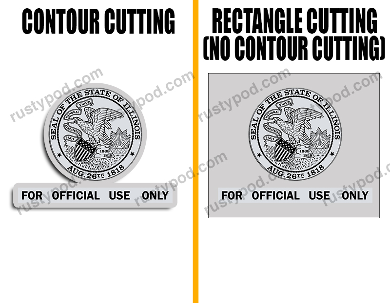 - Contour Cutting/Trim means that the decals are printed with an outline hugging the design. Meanwhile, with no contour cut, the outline will be a rectangle instead.