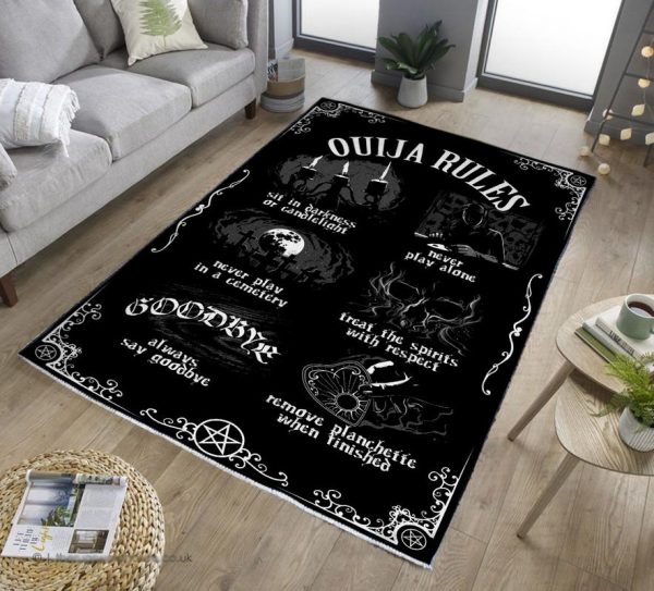 Ouija Board Rules | halloween rug is made of superior-quality materials. You will not get it damaged easily and it can last for years without even showing signs of wear. In addition, it will look great when you use it as artwork in your shop, tattoo studio, or even as a home decor item.