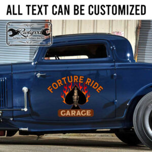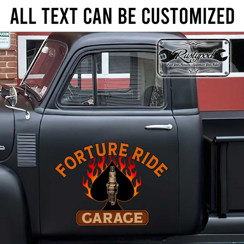 personalized ace spark plug hot rod flaming garage lettering hot rod decal sticker uses UV printing technology on vinyl panels, ensuring outstanding durability and resistance to environmental impacts. This product is safe for vehicle surfaces and easy to apply. The design can be customized according to customer requirements. It also offers the option of contour cut, eliminating excess decal and making the sticker appear as if it is painted on.