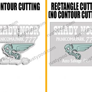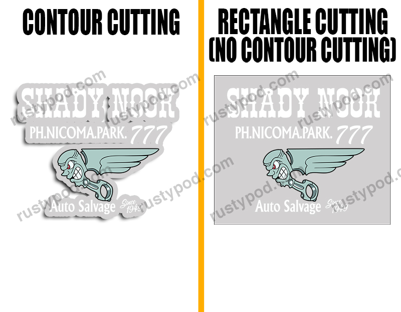 - Contour Cutting/Trim means that the decals are printed with an outline hugging the design. Meanwhile, with no contour cut, the outline will be a rectangle instead.