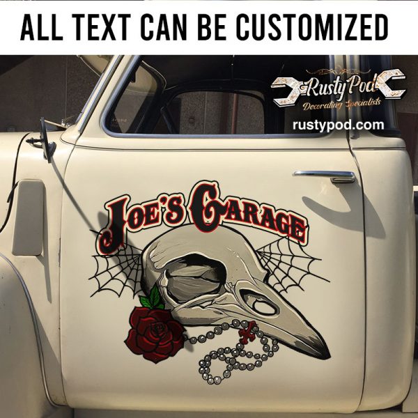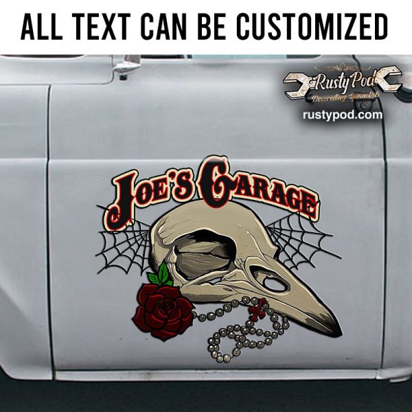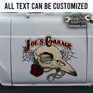 Be the first to review “personalized bird skull garage lettering vinyl sticker 10565”