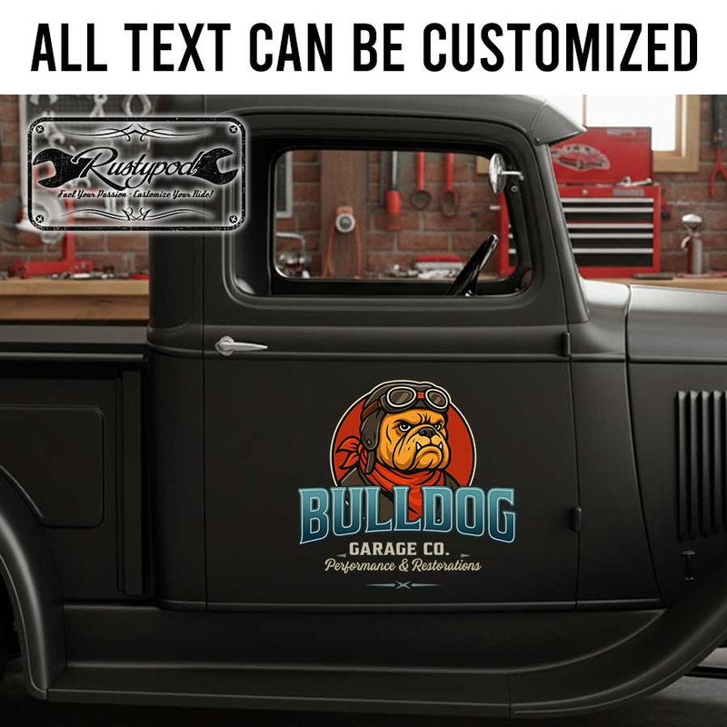 personalized bulldog lettering decal kustom kulture sticker performance and restoration garage sign decal sticker 13872