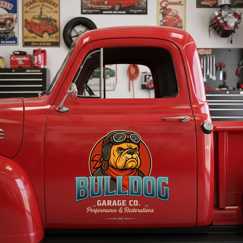 personalized bulldog lettering decal kustom kulture sticker performance and restoration garage sign decal sticker is produced using advanced UV printing technology on high-quality vinyl panels, ensuring superior durability and vibrant colors. This product is designed to resist various environmental impacts, providing long-lasting performance even under harsh conditions. It is safe for all vehicle surfaces and exceptionally easy to apply, making it suitable for both beginners and professionals.