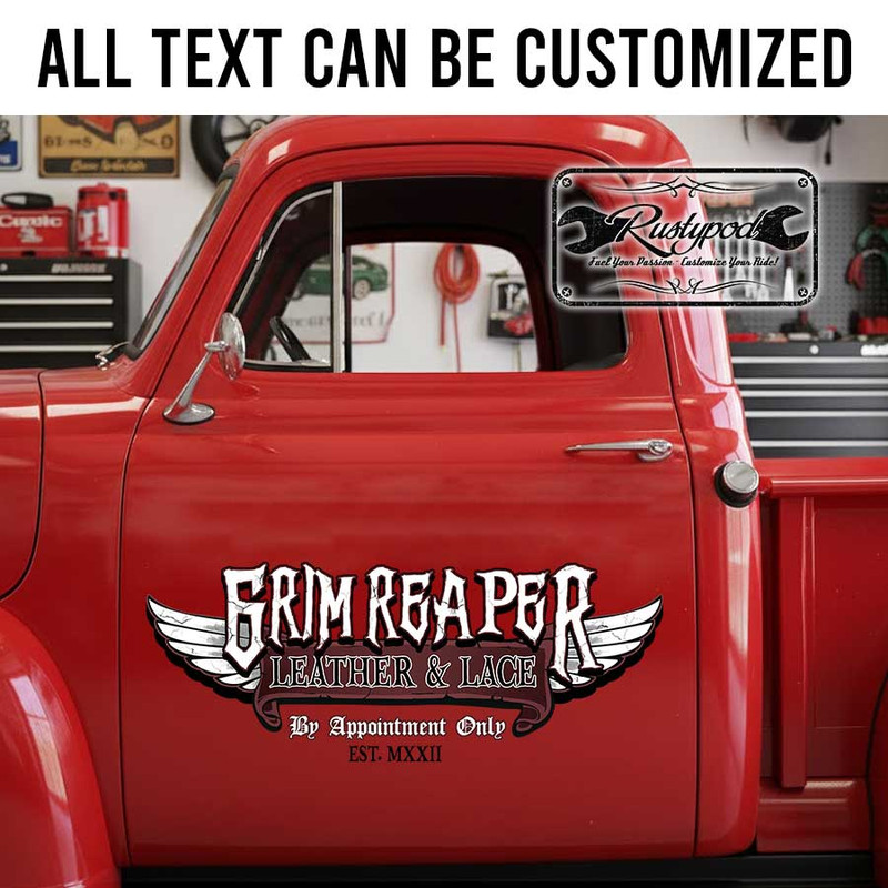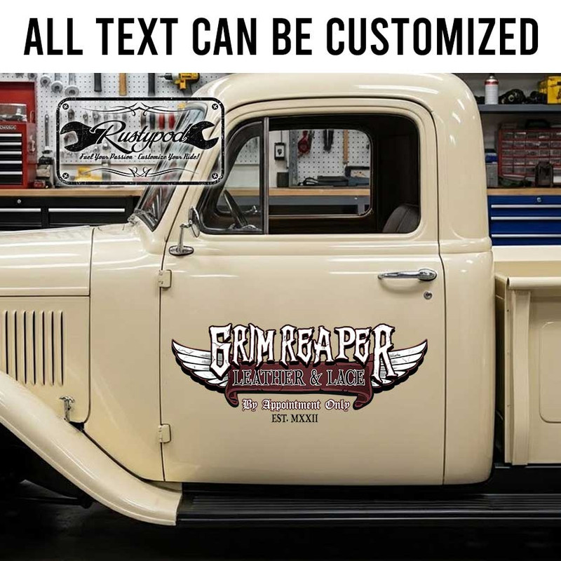 personalized car lettering decal motorcycle lettering decal hot rod decal patina truck sign sticker utilizes advanced UV printing technology on durable vinyl panels, ensuring high durability and exceptional resistance to environmental impacts. Our stickers are safe for vehicle surfaces and incredibly easy to apply. Each design is fully customizable to meet your unique requirements, and you can choose the contour cut option to eliminate excess decal, giving your sticker a seamless, painted-on look. These decals are suitable for cars, motorbikes, glass doors, and more—perfect for expressing your personality or advertising your brand.
