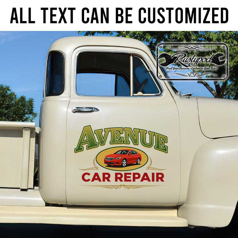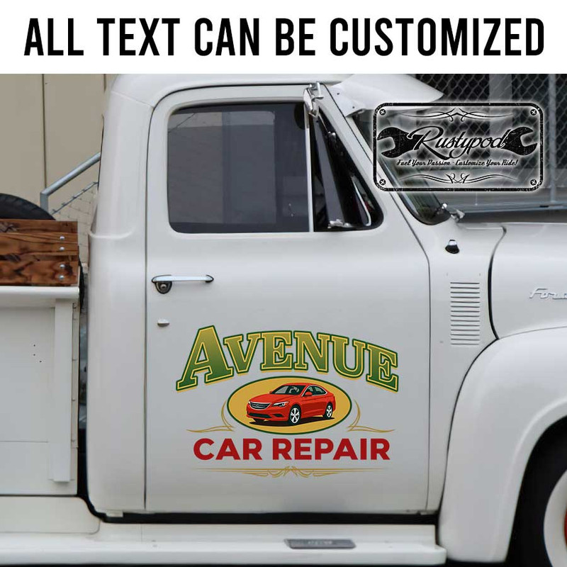 personalized car repair garage lettering company sign vehicle lettering car grapghics sticker uses advanced UV printing technology on premium vinyl panels for vibrant, crisp details and a finish that stands out.