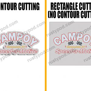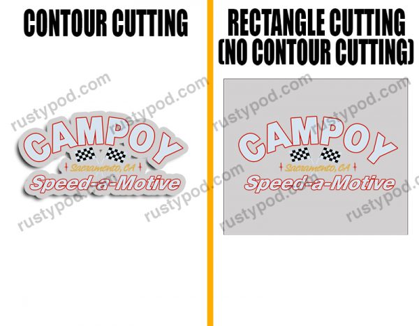 - Contour Cutting/Trim means that the decals are printed with an outline hugging the design. Meanwhile, with no contour cut, the outline will be a rectangle instead.