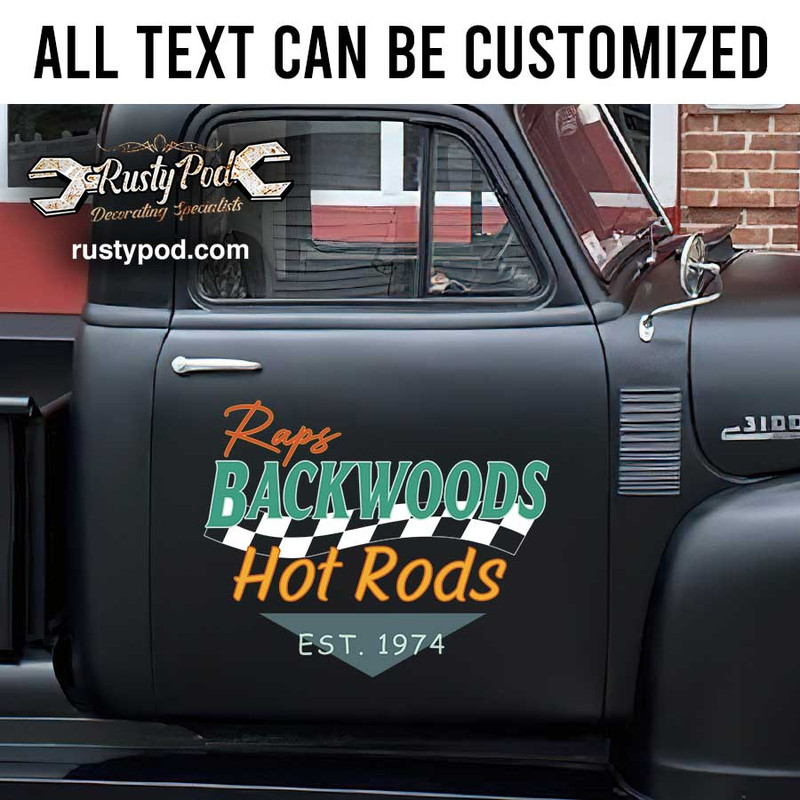 personalized checker flag rat rod door art garage lettering hot rods sticker 12423