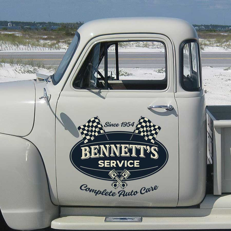 personalized checkered flag lettering auto care company lettering old school lettering sticker 13421