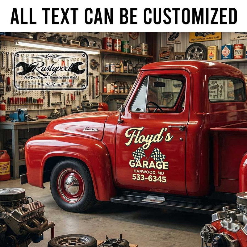 personalized checkered flag lettering decal garage sign decal hot rod decal kustom kulture sticker utilizes advanced UV printing technology on durable vinyl panels, ensuring high durability and exceptional resistance to environmental impacts. Our stickers are safe for vehicle surfaces and incredibly easy to apply. Each design is fully customizable to meet your unique requirements, and you can choose the contour cut option to eliminate excess decal, giving your sticker a seamless, painted-on look. These decals are suitable for cars, motorbikes, glass doors, and more—perfect for expressing your personality or advertising your brand.