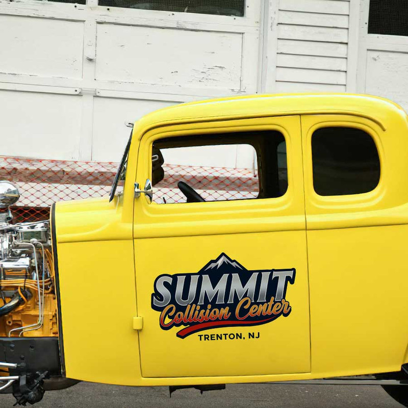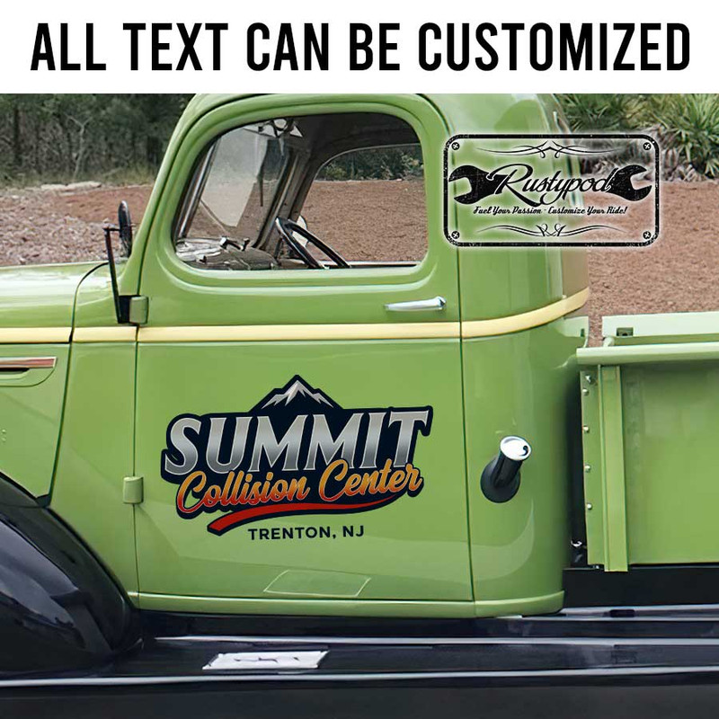 personalized collision center garage lettering company sign decal mountain logo sticker 13755