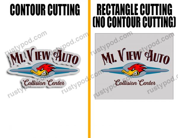- Contour Cutting/Trim means that the decals are printed with an outline hugging the design. Meanwhile, with no contour cut, the outline will be a rectangle instead.