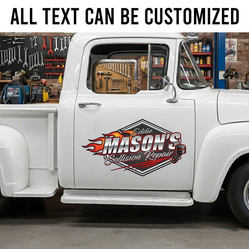 personalized collision repair garage lettering decal vehicle lettering sign sticker is crafted using advanced UV printing technology on durable vinyl panels.