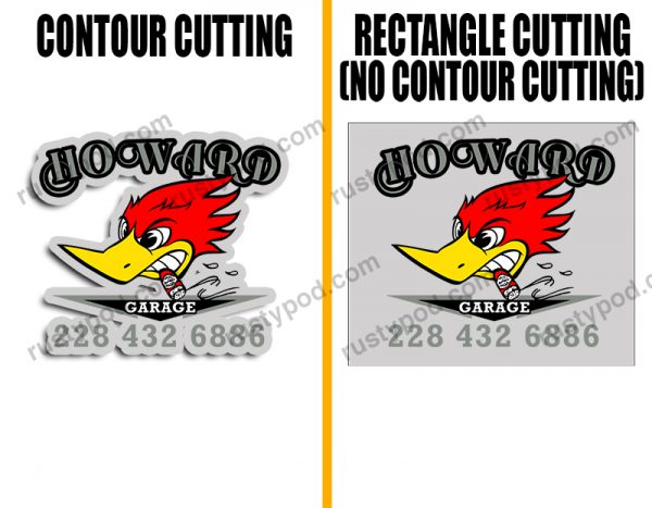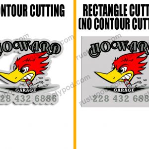 - Contour Cutting/Trim means that the decals are printed with an outline hugging the design. Meanwhile, with no contour cut, the outline will be a rectangle instead.