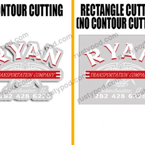 • Contour Cutting/Trim means that the decals are printed with an outline hugging the design. Meanwhile, with no contour cut, the outline will be a rectangle instead.