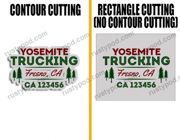 - Contour Cutting/Trim means that the decals are printed with an outline hugging the design. Meanwhile, with no contour cut, the outline will be a rectangle instead.