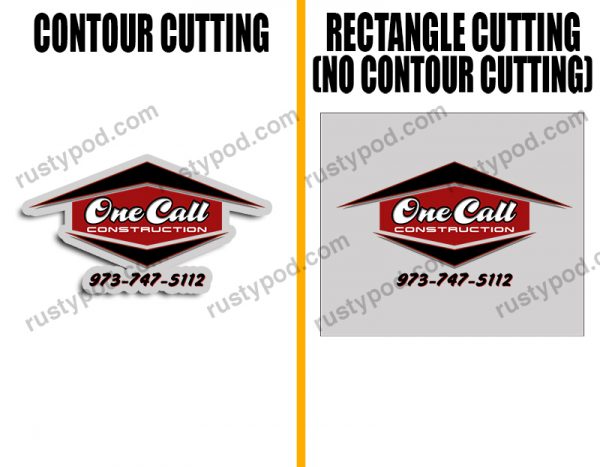- Contour Cutting/Trim means that the decals are printed with an outline hugging the design. Meanwhile, with no contour cut, the outline will be a rectangle instead.