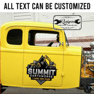 personalized constructiong company door sign truck grapghics excavator service company sign sticker uses advanced UV printing technology on durable vinyl panels. This ensures exceptional durability and resistance to environmental impacts while remaining safe for vehicle surfaces.