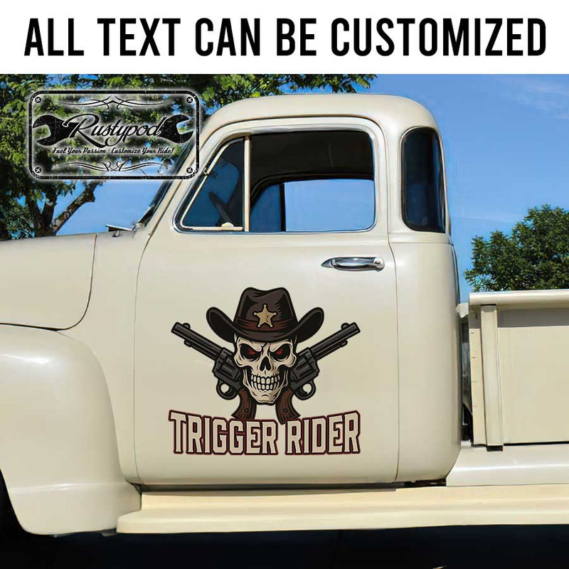 personalized cowboy lettering skull lettering sign hot rod door art sticker 13375