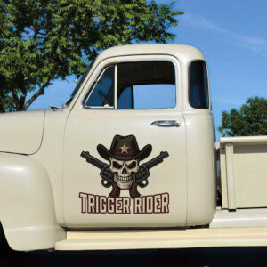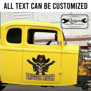 personalized cowboy lettering skull lettering sign hot rod door art sticker uses advanced UV printing technology on durable vinyl panels. This ensures exceptional durability and resistance to environmental impacts while remaining safe for vehicle surfaces.
