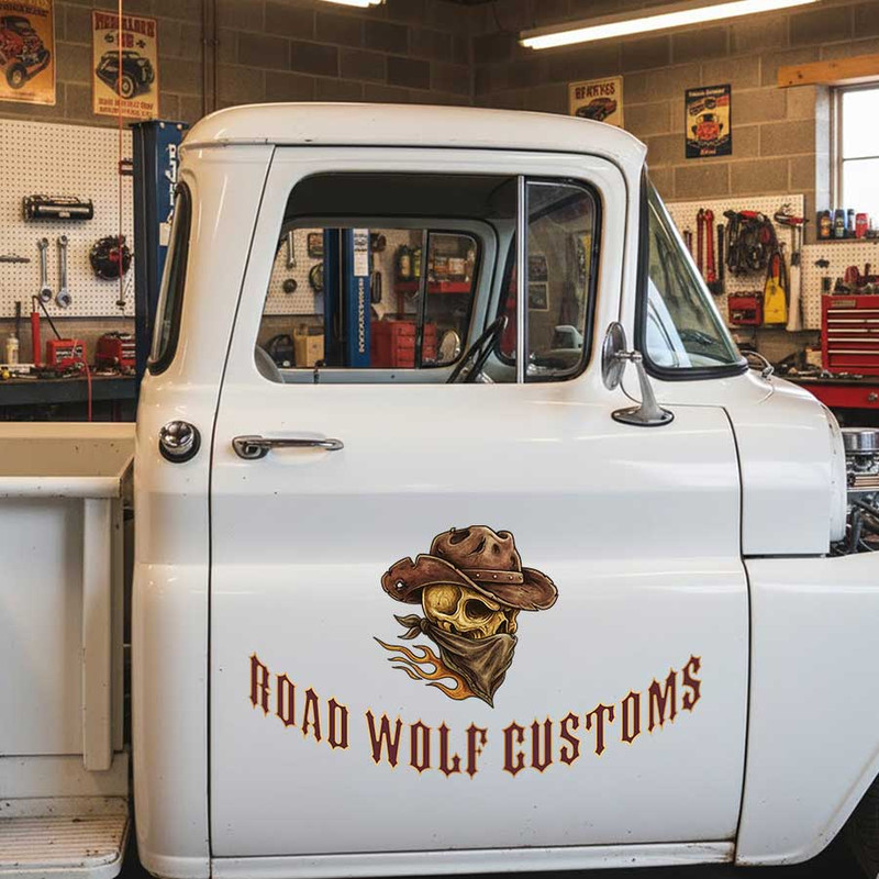 personalized cowboy skull hot rod lettering decal rat rod door sign decal kustom kulture sticker utilizes advanced UV printing technology on durable vinyl panels, ensuring high durability and exceptional resistance to environmental impacts. Our stickers are safe for vehicle surfaces and incredibly easy to apply. Each design is fully customizable to meet your unique requirements, and you can choose the contour cut option to eliminate excess decal, giving your sticker a seamless, painted-on look. These decals are suitable for cars, motorbikes, glass doors, and more—perfect for expressing your personality or advertising your brand.