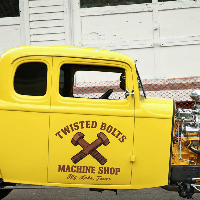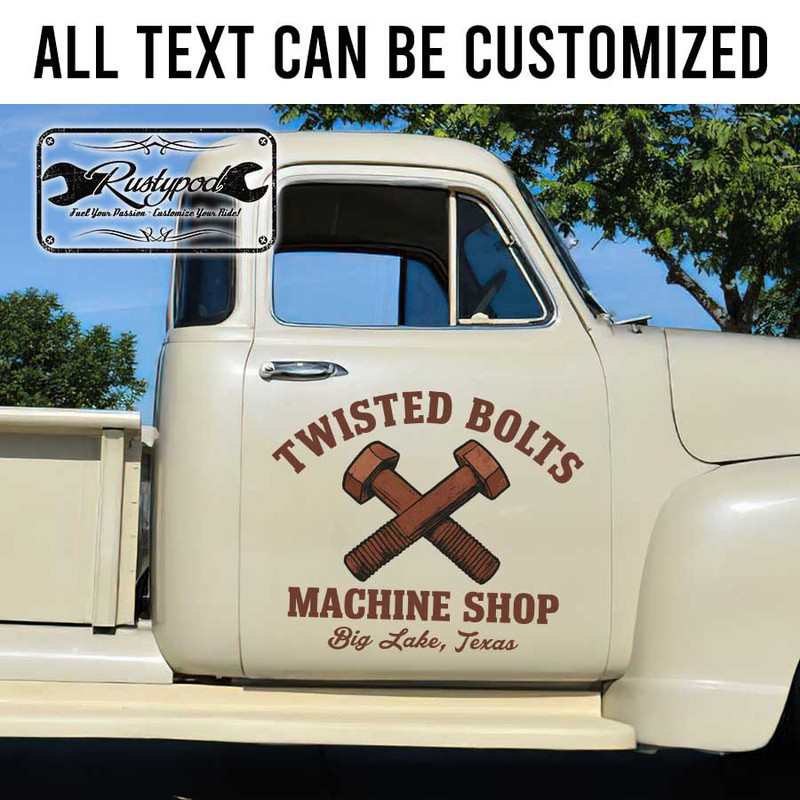personalized crossing bolds hot rod door sign rusty nuts lettering kustom kulture repair shop lettering sticker 13248